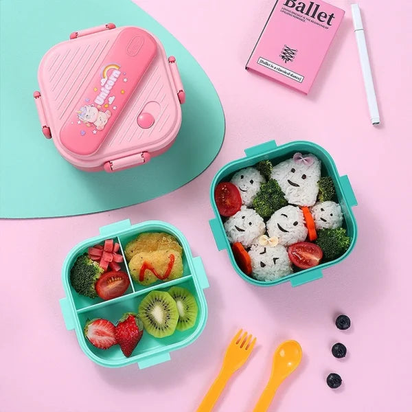3 Grids Unicorn Lunch Box For Children Students Sandwich Fruit Food Storage Container Cartoon Kids Bento Box For School Camping – Random Color